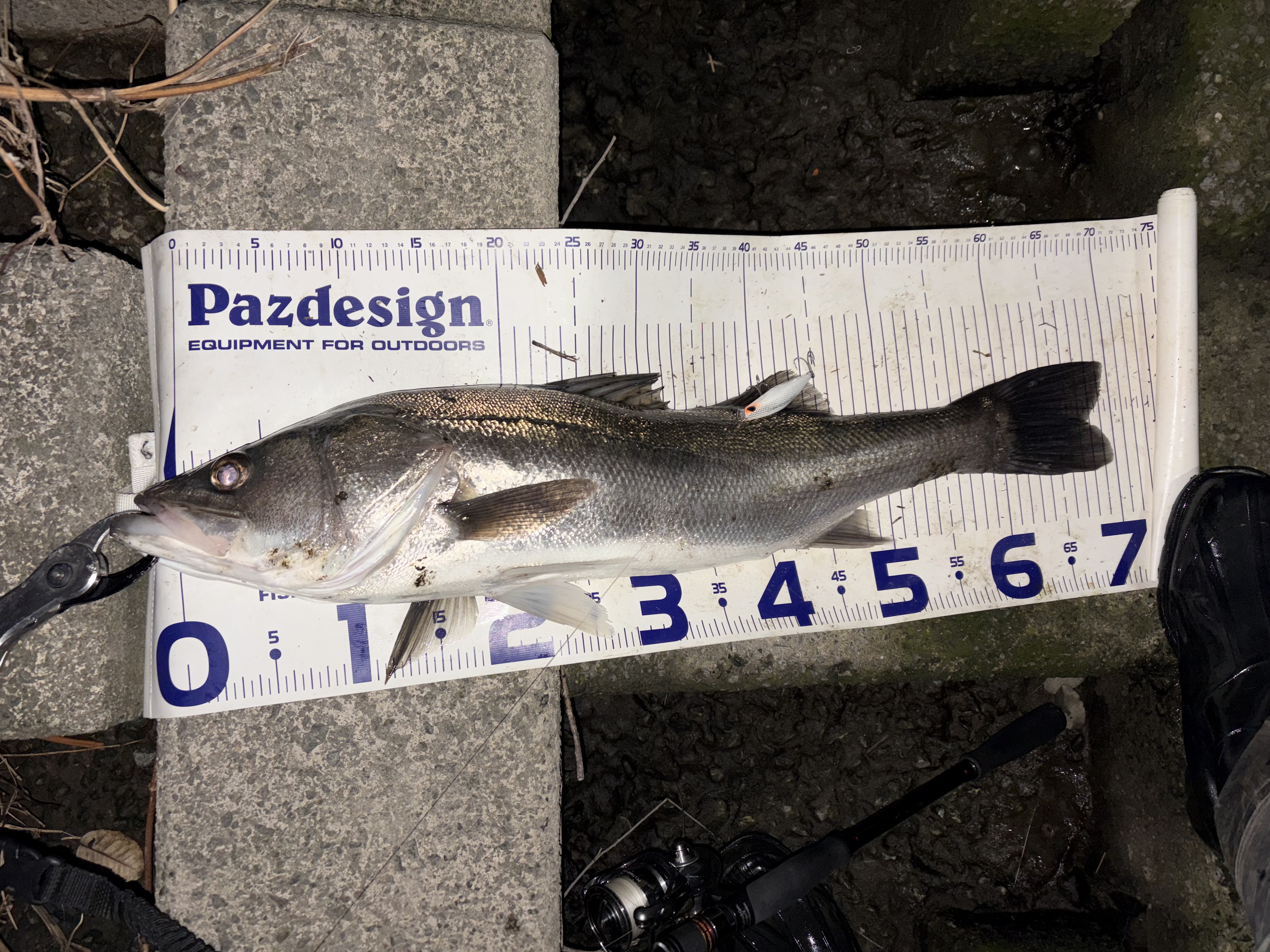 バチパターン本命日、出撃するも狙ったポイントには入れず彷徨うことに。。敷石やテトラの兼ね合いでランディングしづらそうなとこしか空いておらず苦戦。そうこうしてる間に時合い終了の気配に(泣)悔しいので夕飯食べた後に下げ後半で再エントリー。一応バチルアー投げつつも反応なし、徐々にレンジを入れていきボトム付近にベイトの気配。マリエラで1キャッチした後、よりスローに流すためにBANQ 82S HEAVYを選択。しっかり沈めてじっくり流したら狙い通りにHIT!! バチの鬱憤を晴らせる嬉しい1っ匹となりました٩( ᐛ )و